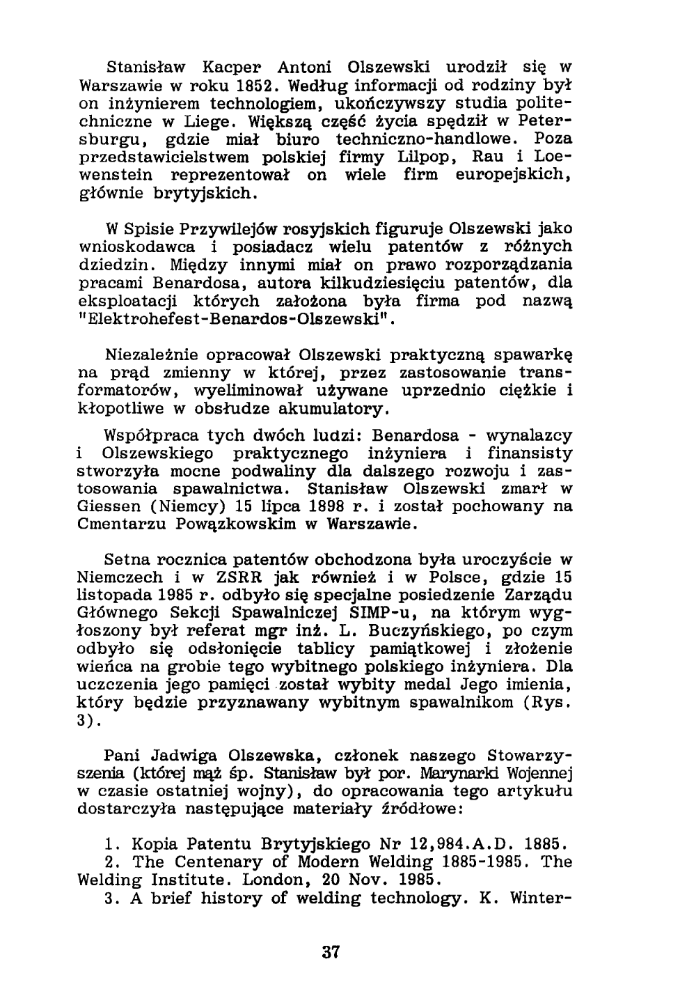 Stanisław Olszewski, współwłaściciel pierwszych patentów elektrycznego spawania